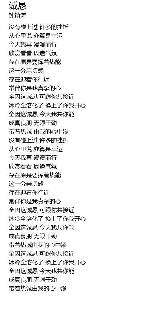 | [01:10.65] | 全因这诚恳 可跟你共接近 |