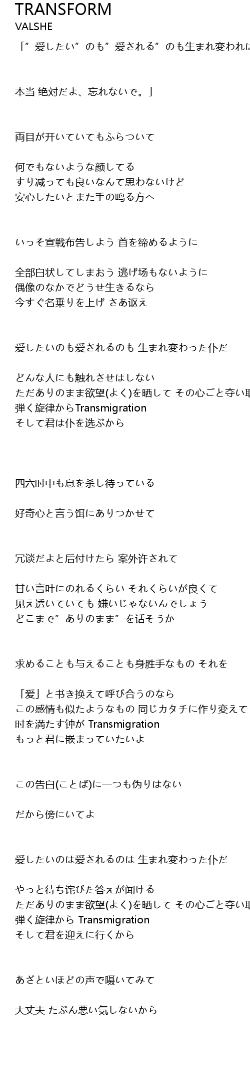 | 弾く旋律から Transmigration | |
