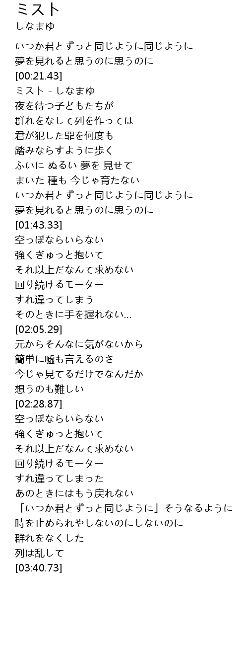 [03:09.65] 「いつか君とずっと同じように」そうなるように
