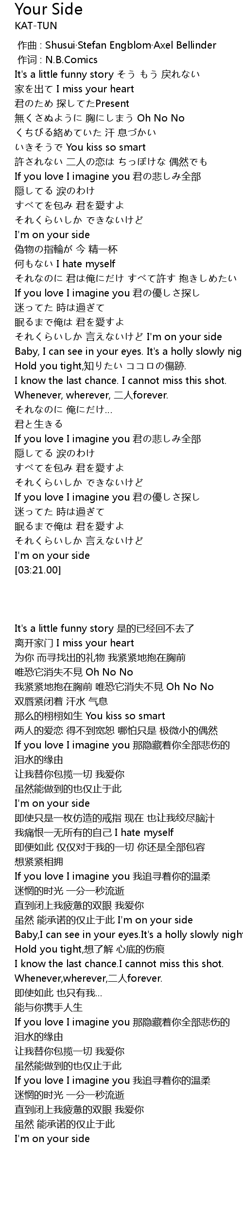 | [01:57.40] | それくらいしか 言えないけど I'm on your side |