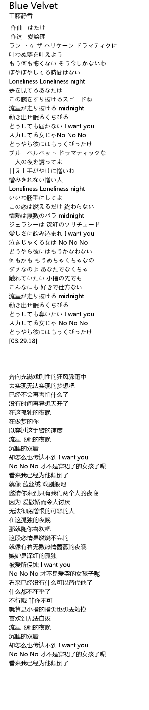 | [01:26.84] | ブルーベルベット ドラマティックな |