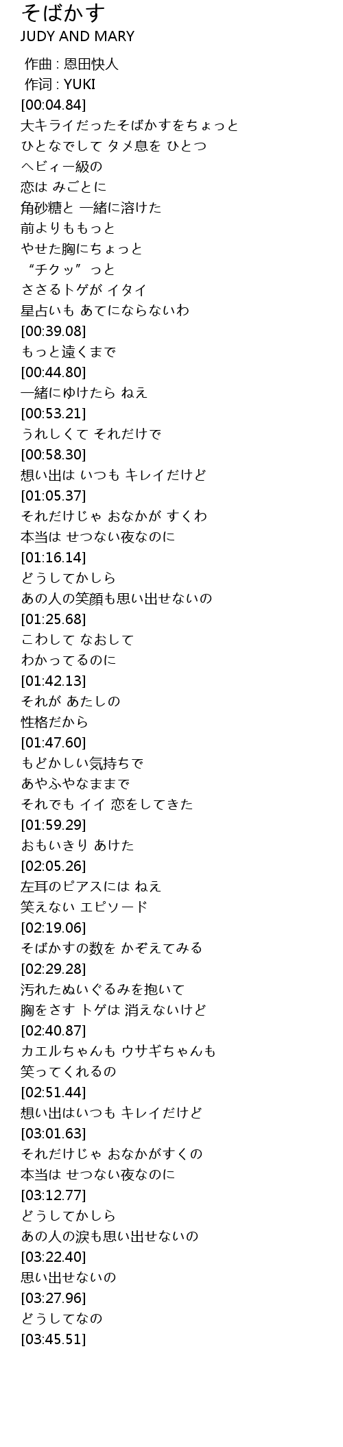| [02:23.88] | そばかすの数を かぞえてみる |