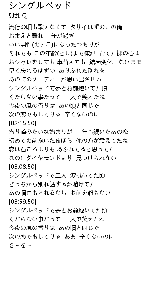 | 歌曲 | シングルベッド |