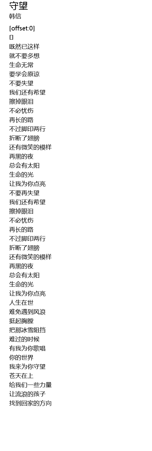 | [03:16.815] | 我来为你守望 |