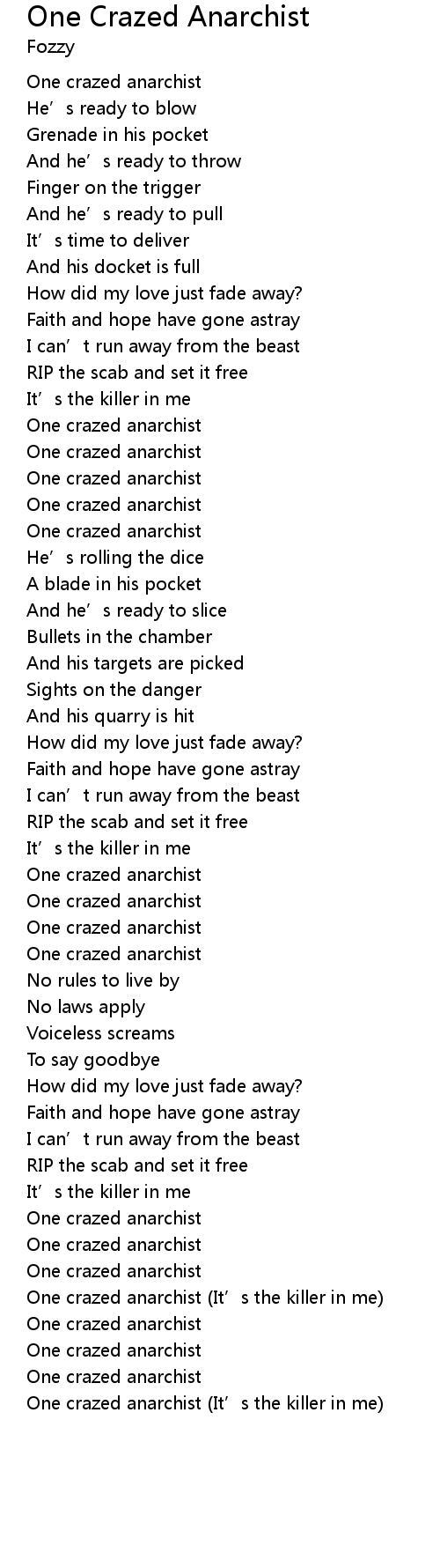 | 歌曲 | One Crazed Anarchist |