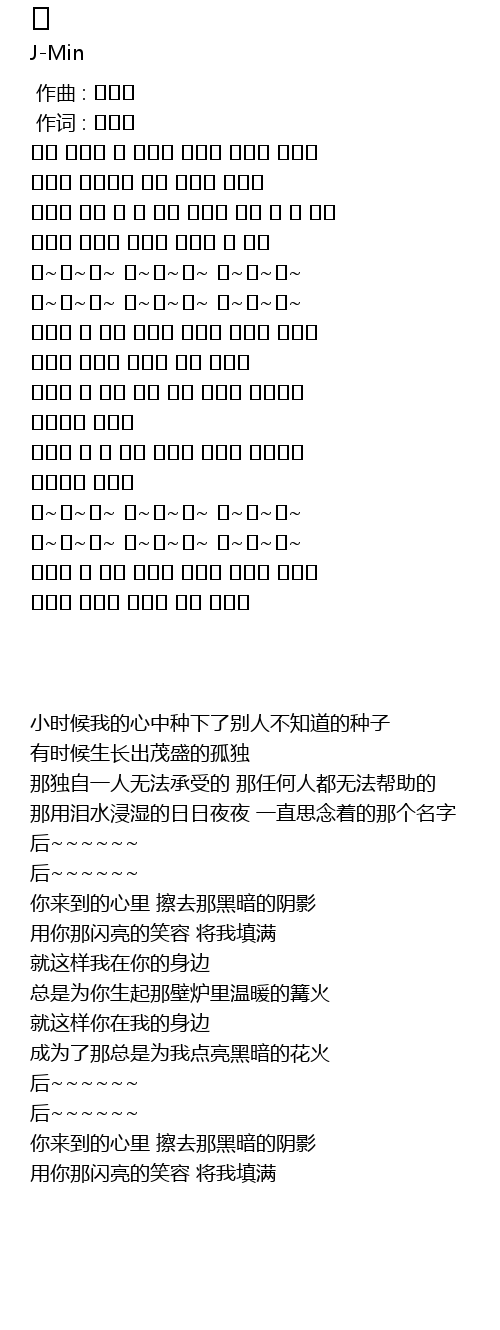 | [01:59.460] | 그리고 넌 내 곁에 언제나 어둠을 밝혀주는 불꽃으로 남으리 |