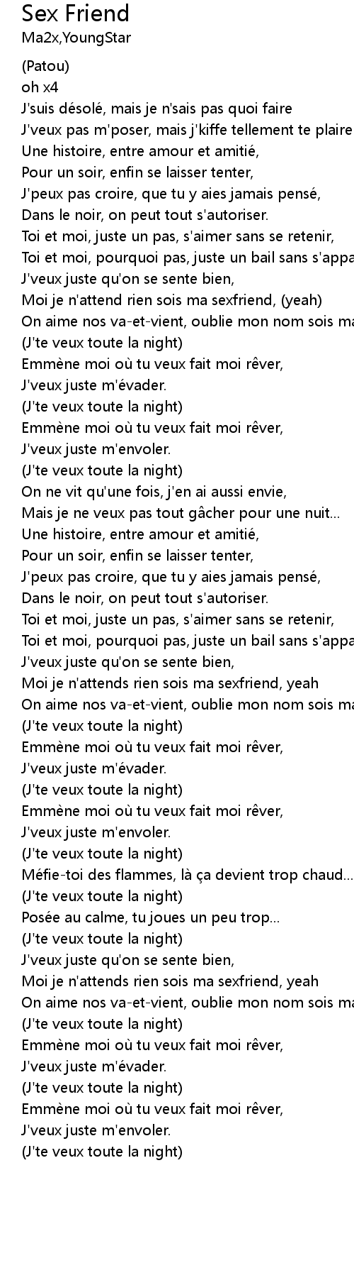 | On aime nos vaetvient, oublie mon nom sois ma sexfriend, | |