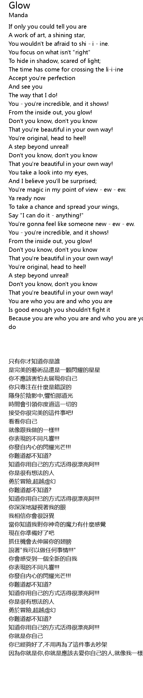 That you're beautiful in your own way! |