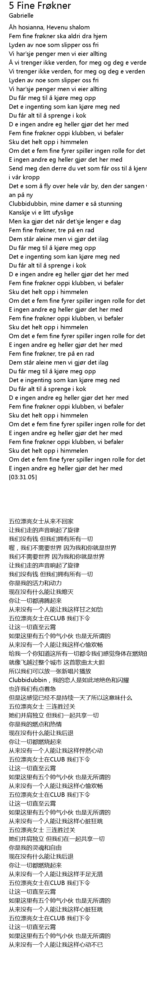 | [00:59.34] | Fem fine fr kner oppi klubben, vi befaler |