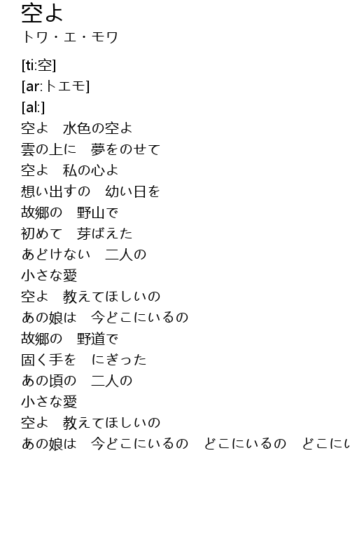 | [01:59.05] | あの娘は 今どこにいるの どこにいるの どこにいるの |