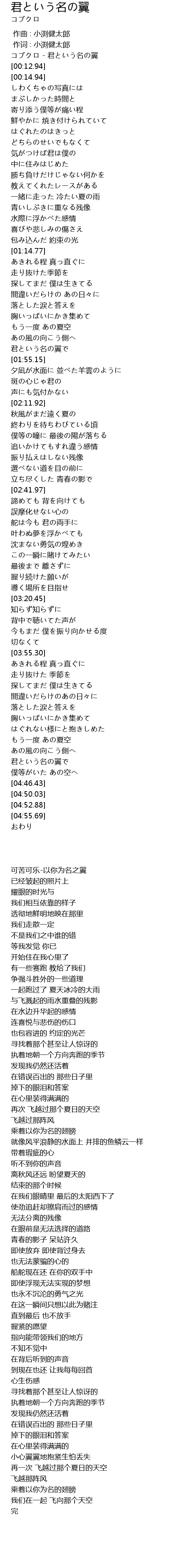| [00:00.00] | コブクロ - 君という名の翼 |
