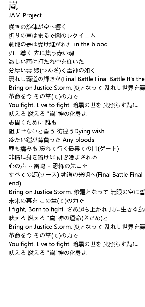 | 吠えろ 燃えろ "嵐"神の化身よ | |