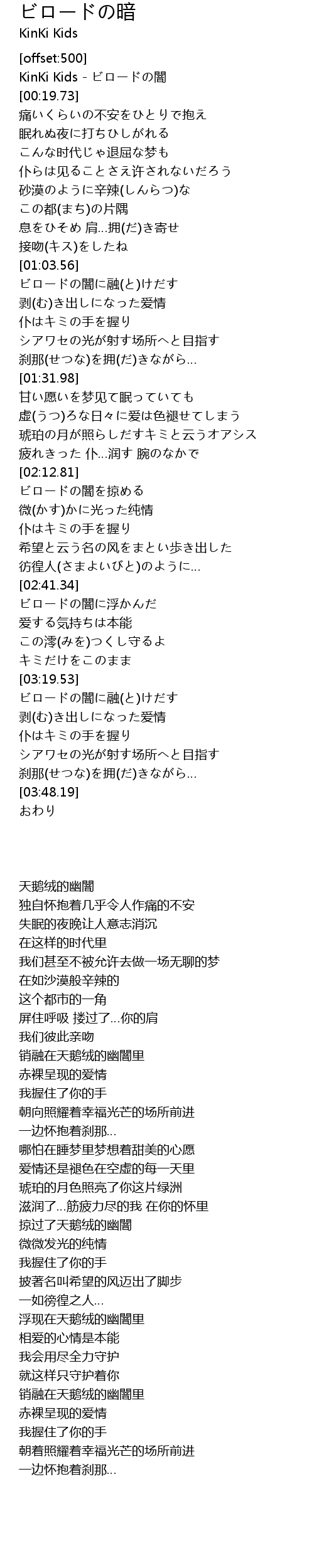 | [00:00.00] | KinKi Kids - ビロードの闇 |