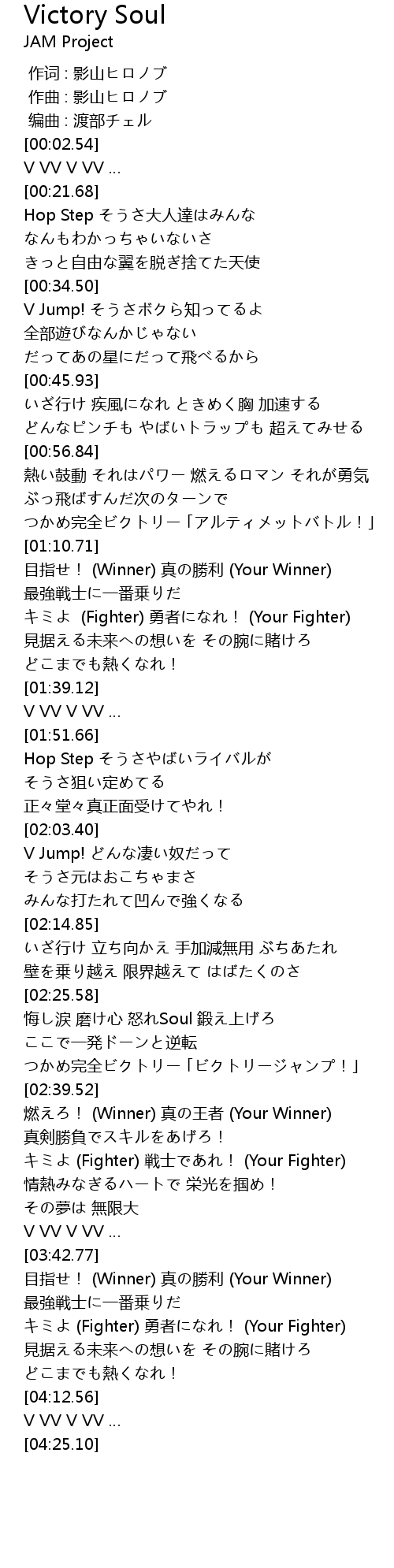 | [02:03.41] | V Jump! どんな凄い奴だって |