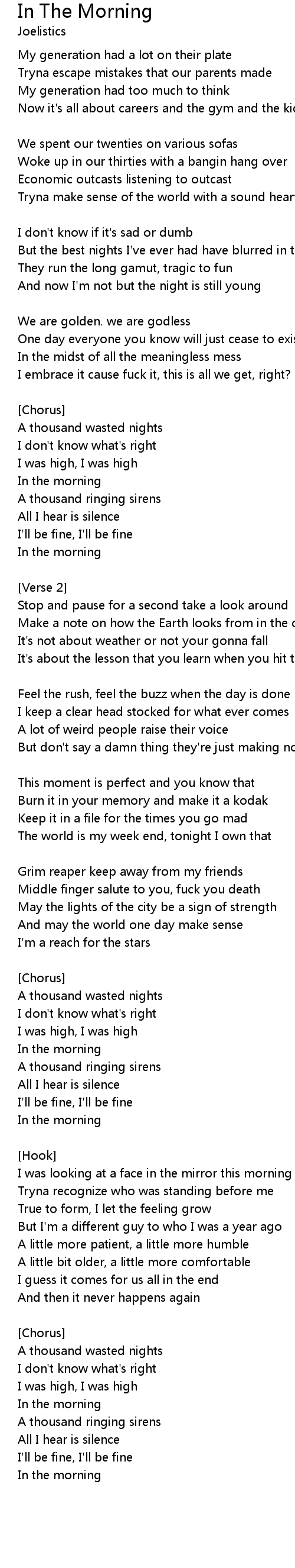 And now I'm not but the night is still young |