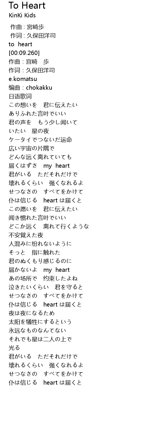 | [00:00.00] | 作曲 : 宮崎歩 |