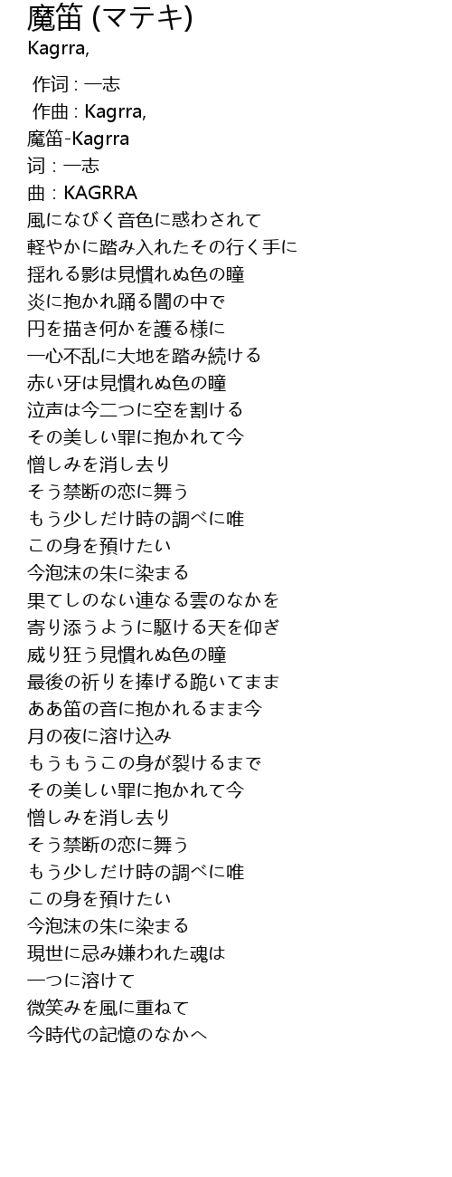 | [00:00.101] | zuò qǔ : Kagrra, |