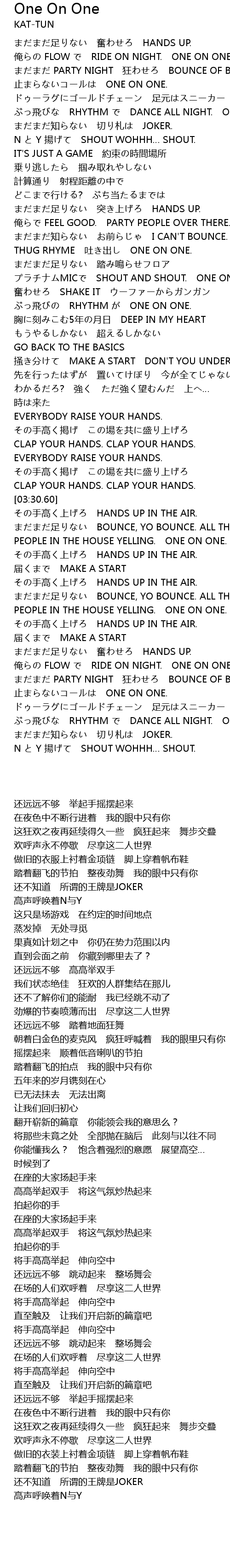 | [01:32.30] | 止まらないコールは ONE ON ONE. |