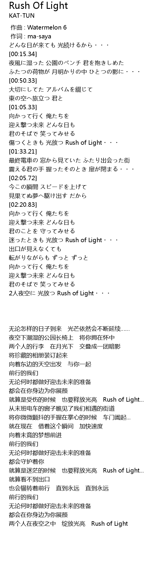 | [03:44.57] | 2 rén yè kōng guāng fàng Rush of Light |