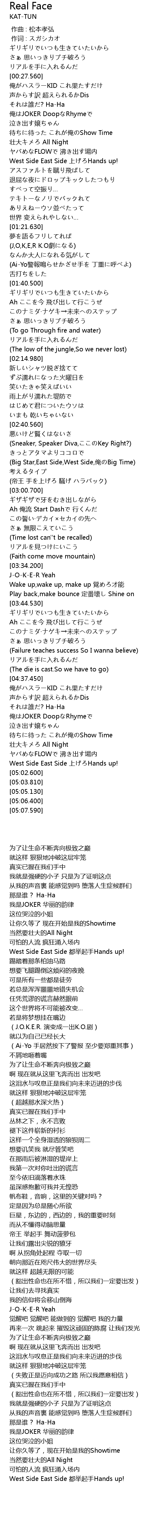 | [05:00.900] | West Side East Side 上げろHands up! |