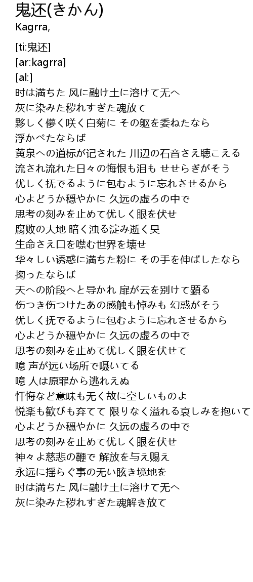 | [00:15.01] | 夥しく儚く咲く白菊に その躯を委ねたなら |