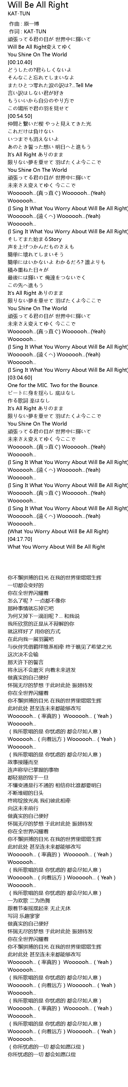 | [01:38.40] | (I Sing It What You Worry About Will Be All Right) |