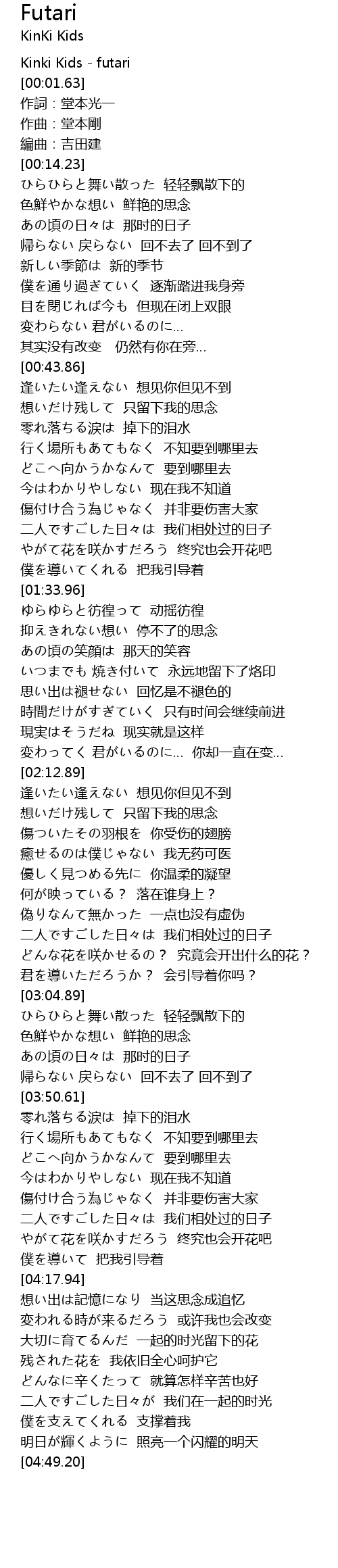 | [02:50.26] | 二人ですごした日々は 我们相处过的日子 |