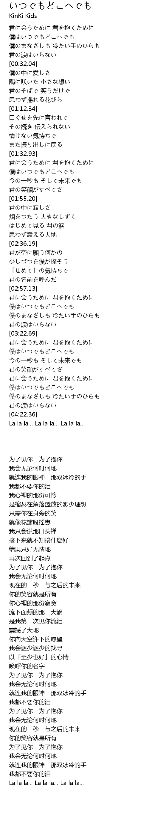 | [01:38.60] | 僕はいつでもどこへでも |