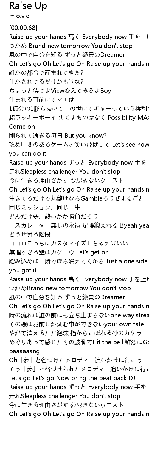 | [03:45.47] | Oh Let's go Oh Let's go Oh Raise up your hands now |