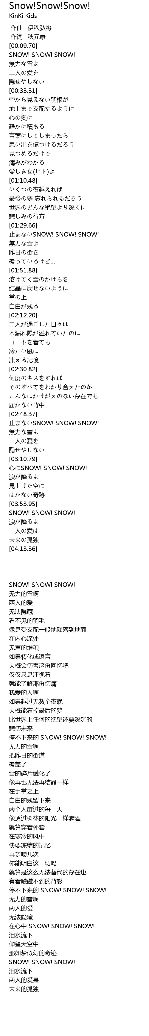 | [03:35.79] | xin SNOW! SNOW! SNOW! |