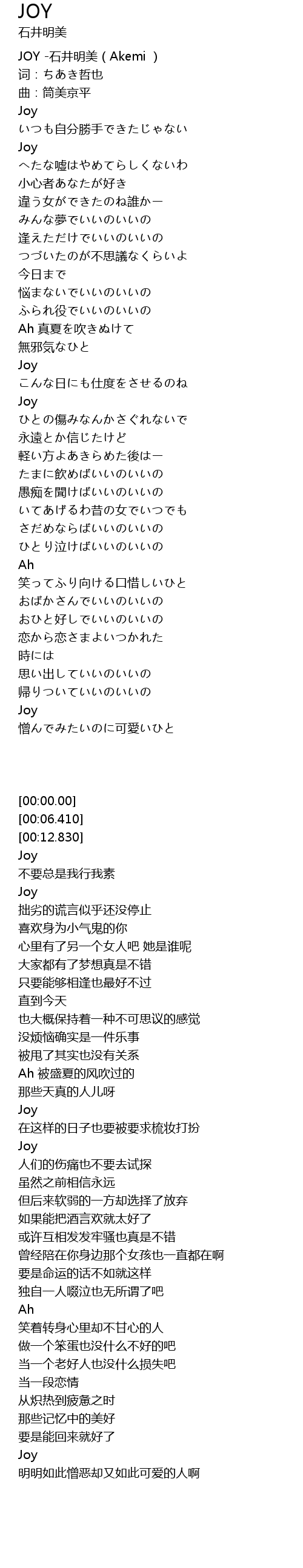 [00:00.00] JOY shí jǐng míng měi Akemi