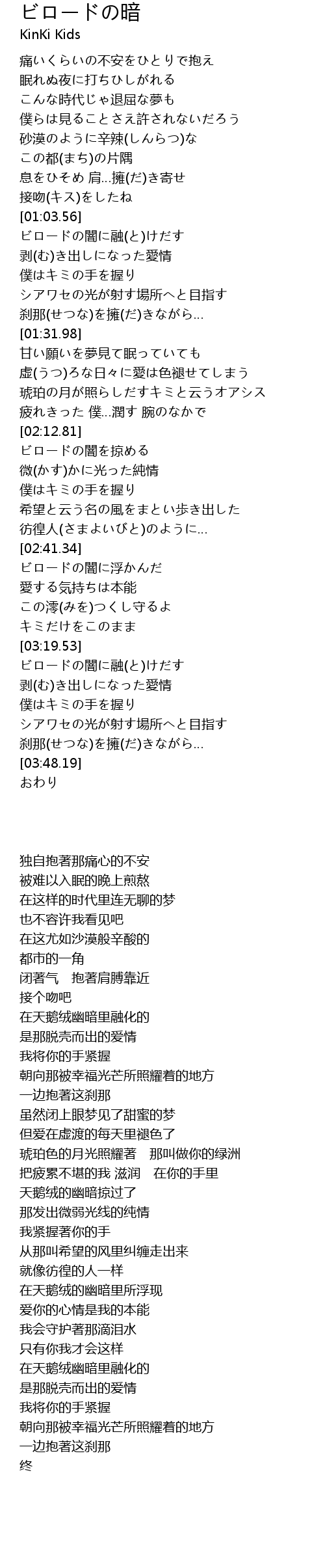 | [03:19.90] | ビロードの闇に融(と)けだす |