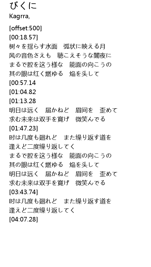 | [00:45.89] | まるで腔を这う様な 能面の向こうの |