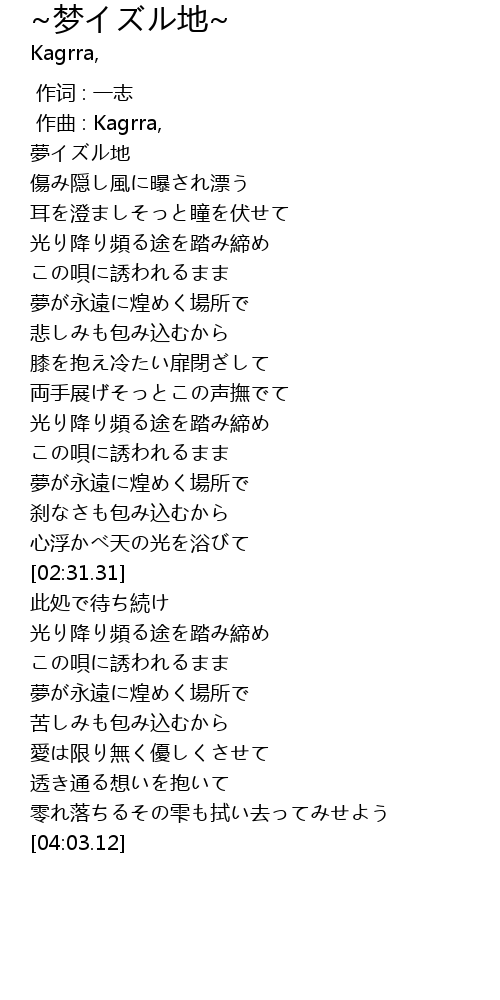 | [00:02.88] | 夢イズル地 |