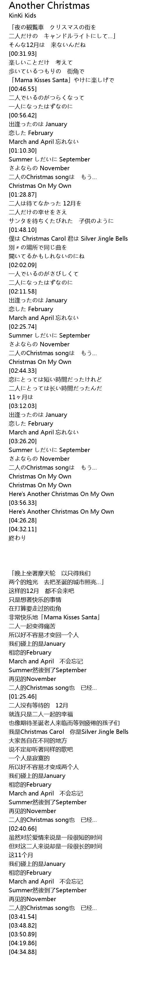 | [03:50.89] | Here' s Another Christmas On My Own |