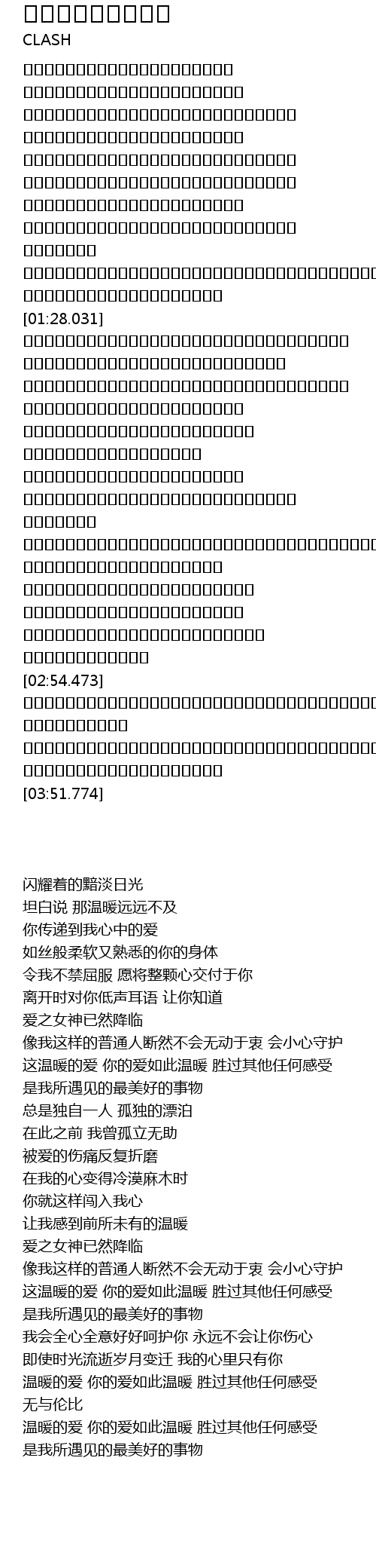 | [03:32.021] | 温暖的爱 你的爱如此温暖 胜过其他任何感受 |