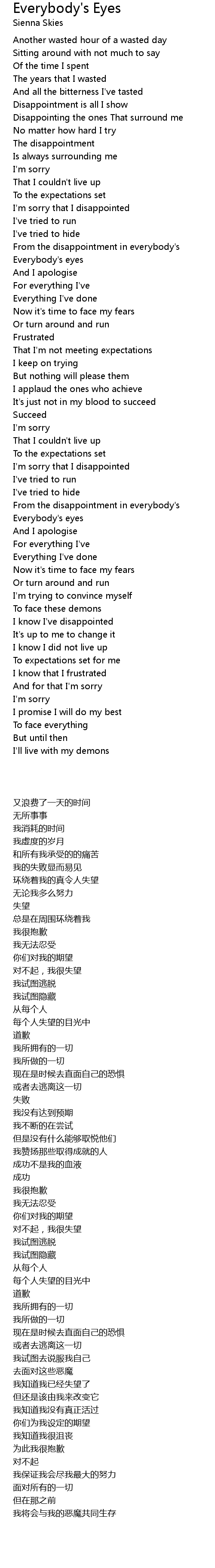 Disappointing the ones That surround me |