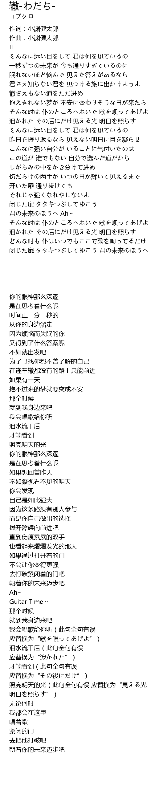 | 闭じた扉 タタキつぶしてゆこう 君の未来のほうへ |
