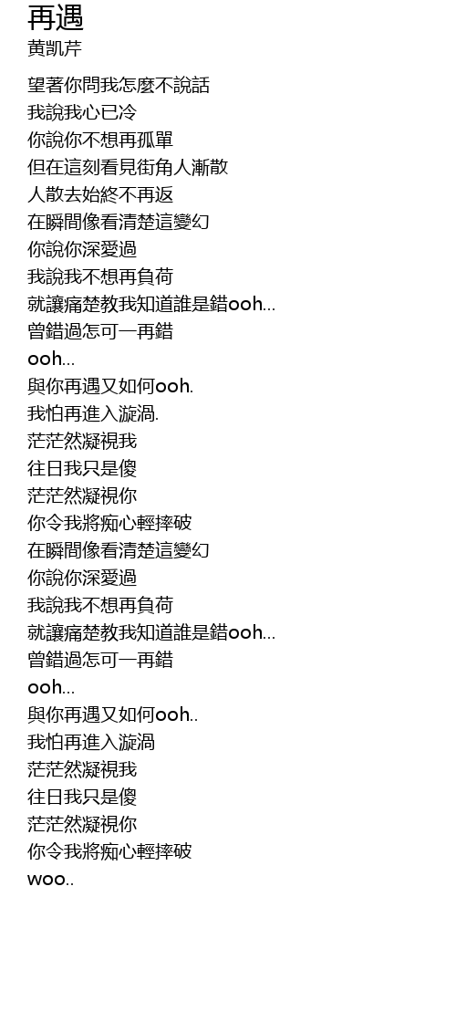 | 歌曲 | 再遇 |