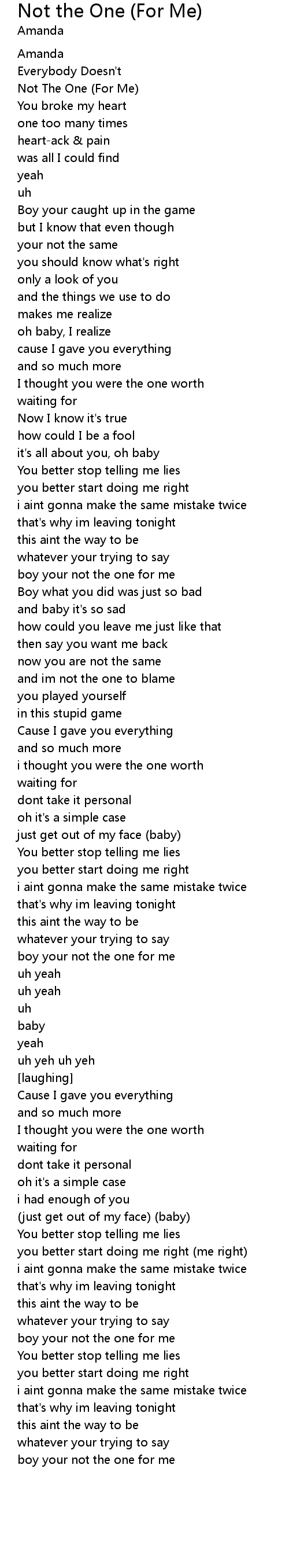 Not the One (For Me) 歌词