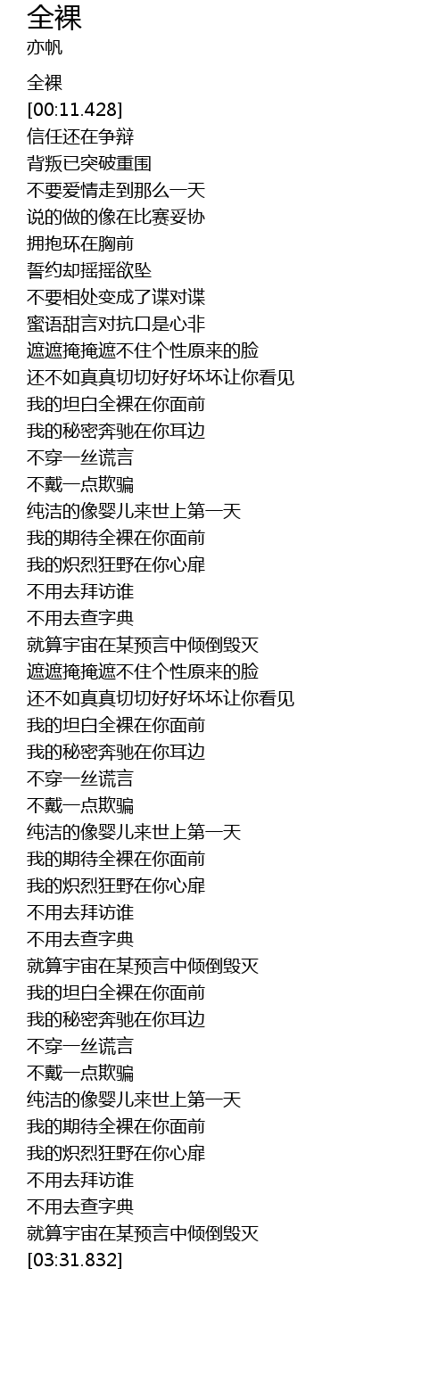 | [02:18.237] | 我的坦白全裸在你面前 |