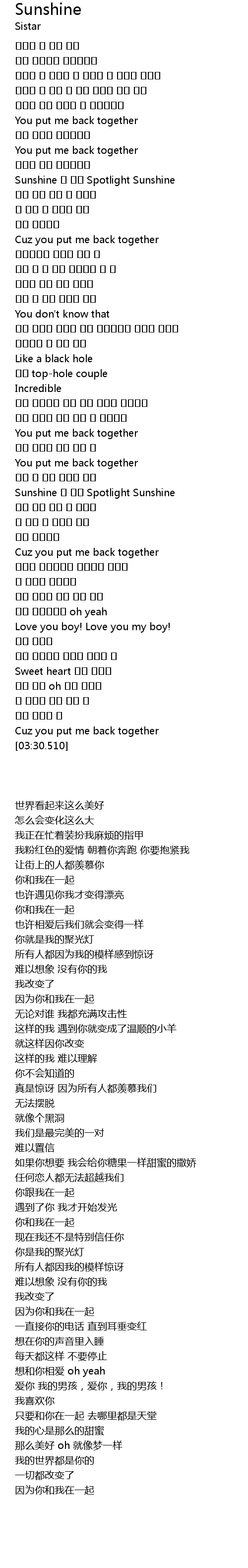| [01:03.540] | Sunshine 넌 나의 Spotlight Sunshine |