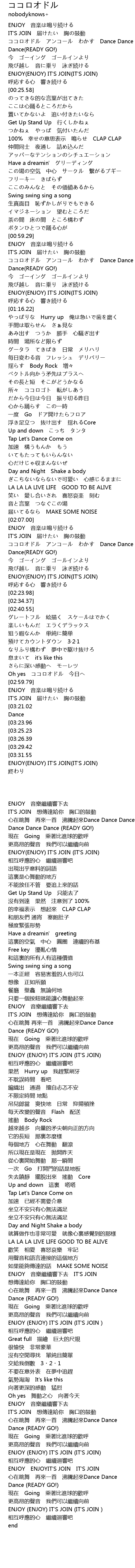 | [01:03.69] | ココロオドル アンコール わかす Dance Dance |