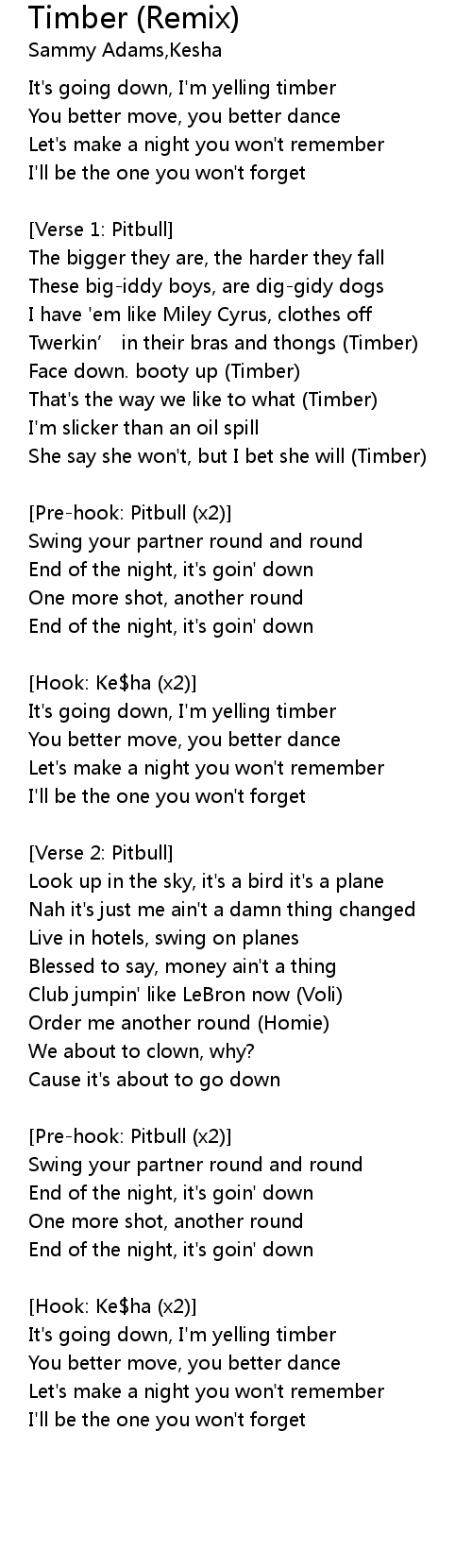| She say she won' t, but I bet she will Timber | |