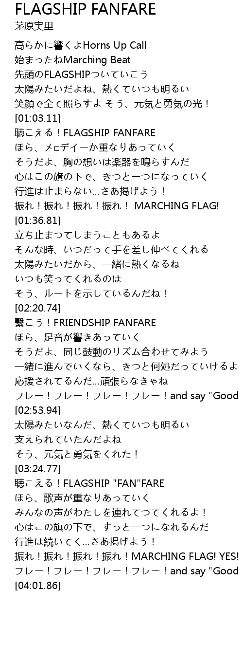 | [01:04.69] | 聴こえる!FLAGSHIP FANFARE |