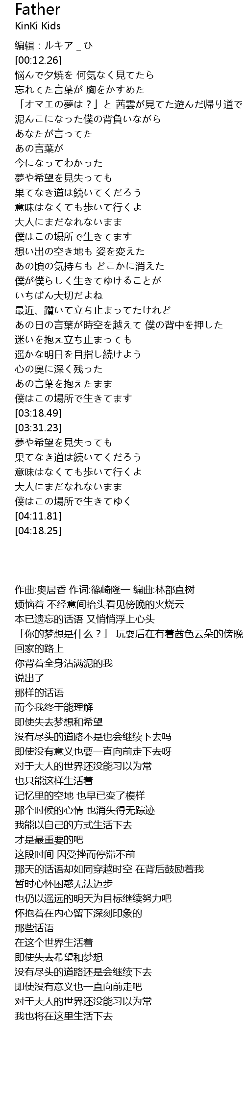 | [00:24.35] | 忘れてた言葉が 胸をかすめた |