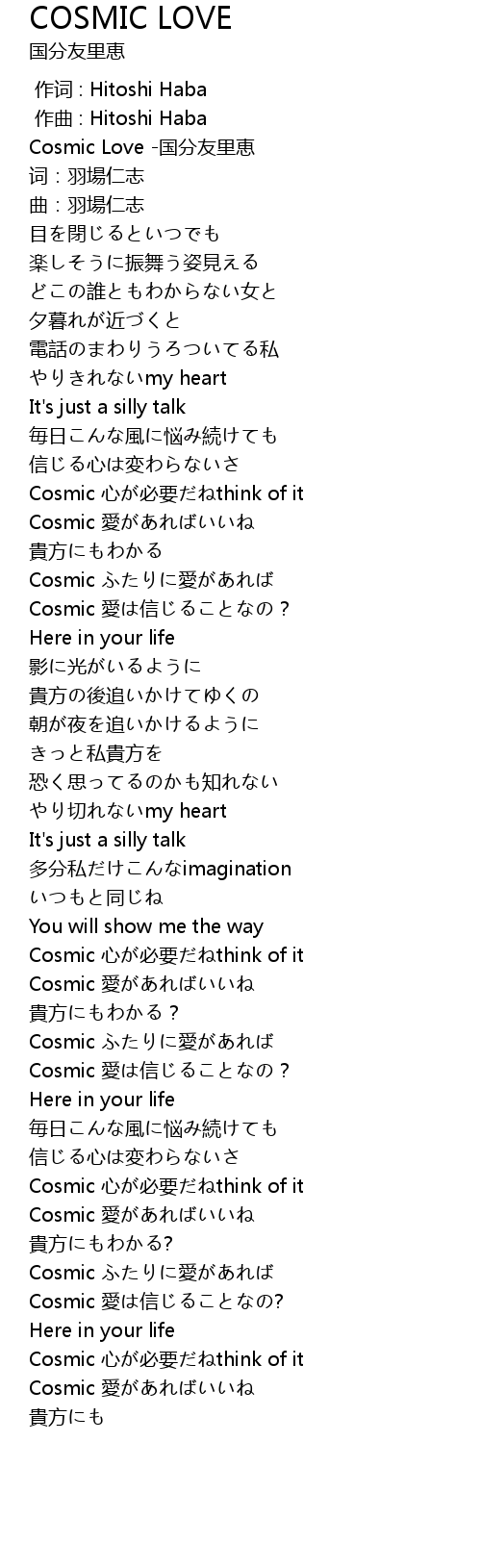 | [00:00.261] | Cosmic Love -国分友里恵 |