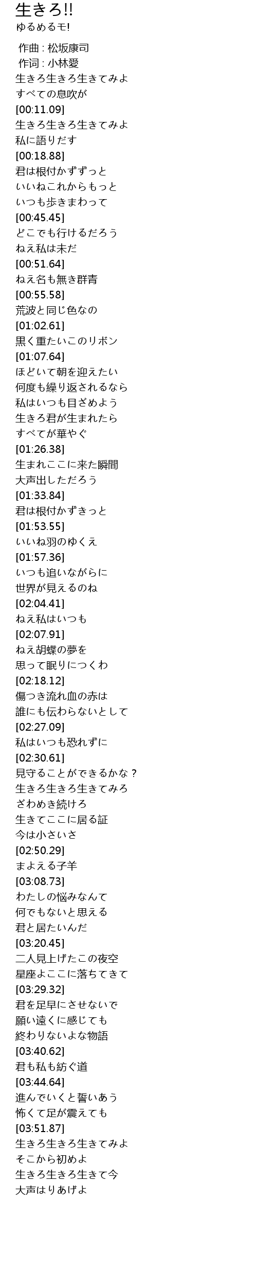 | [00:04.10] | 生きろ生きろ生きてみよ |