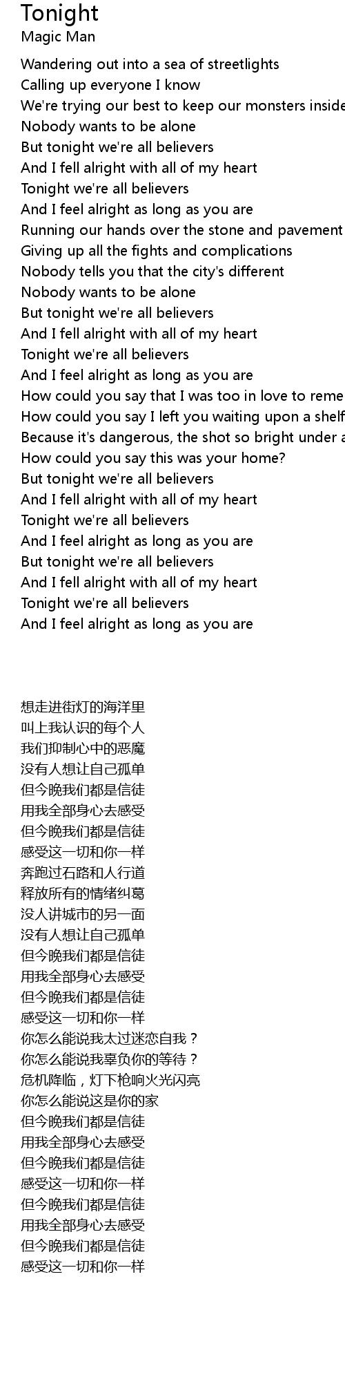 But tonight we're all believers |