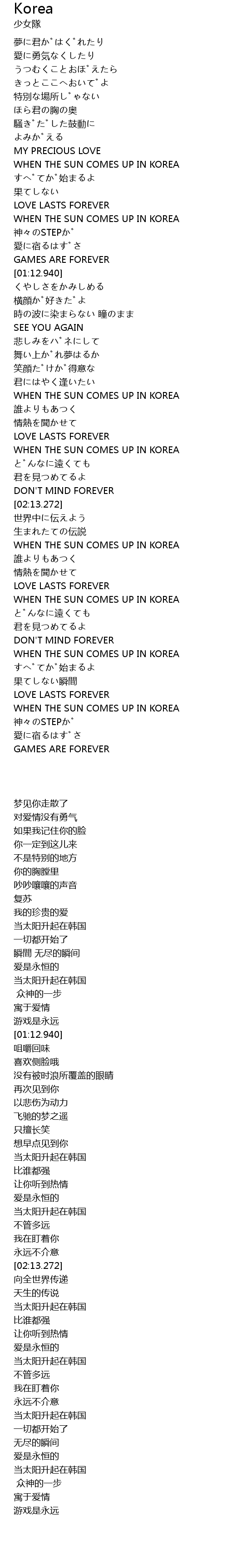 | [03:06.574] | WHEN THE SUN COMES UP IN KOREA |